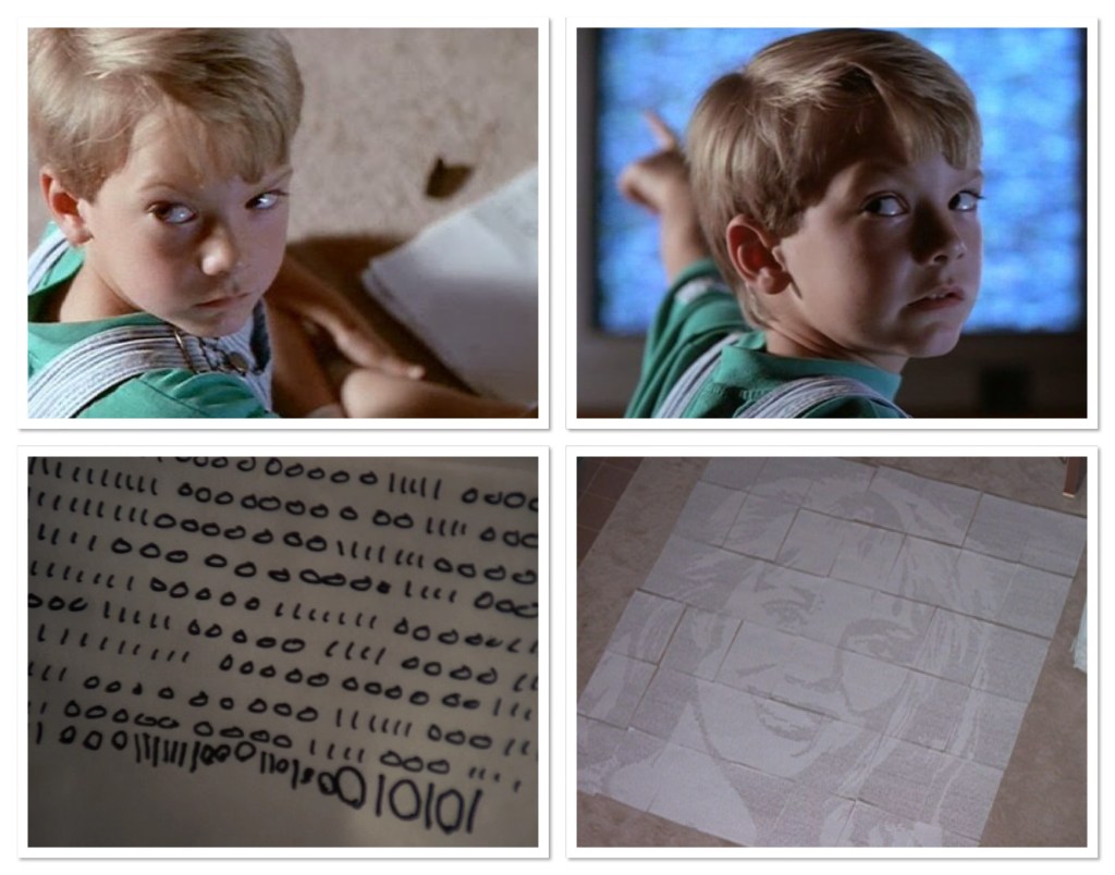 When the very act of writing a dream down on paper creates unintended or perhaps even subconsciously intended meaning that itself translates into waking life, some fascinating questions are raised about the distinction of a separation between dreams and waking reality and what motivates us to do the things that we do. It reminds me of an excellent episode of the X-Files called Conduit, where a boy points at the television and says all of the 1s and 0s that he had been drawing on sheets of paper were sent to him through the screen. When all of his drawings were put together and viewed from above, the many 1s and 0s on the pages formed a super-image of a woman’s face.