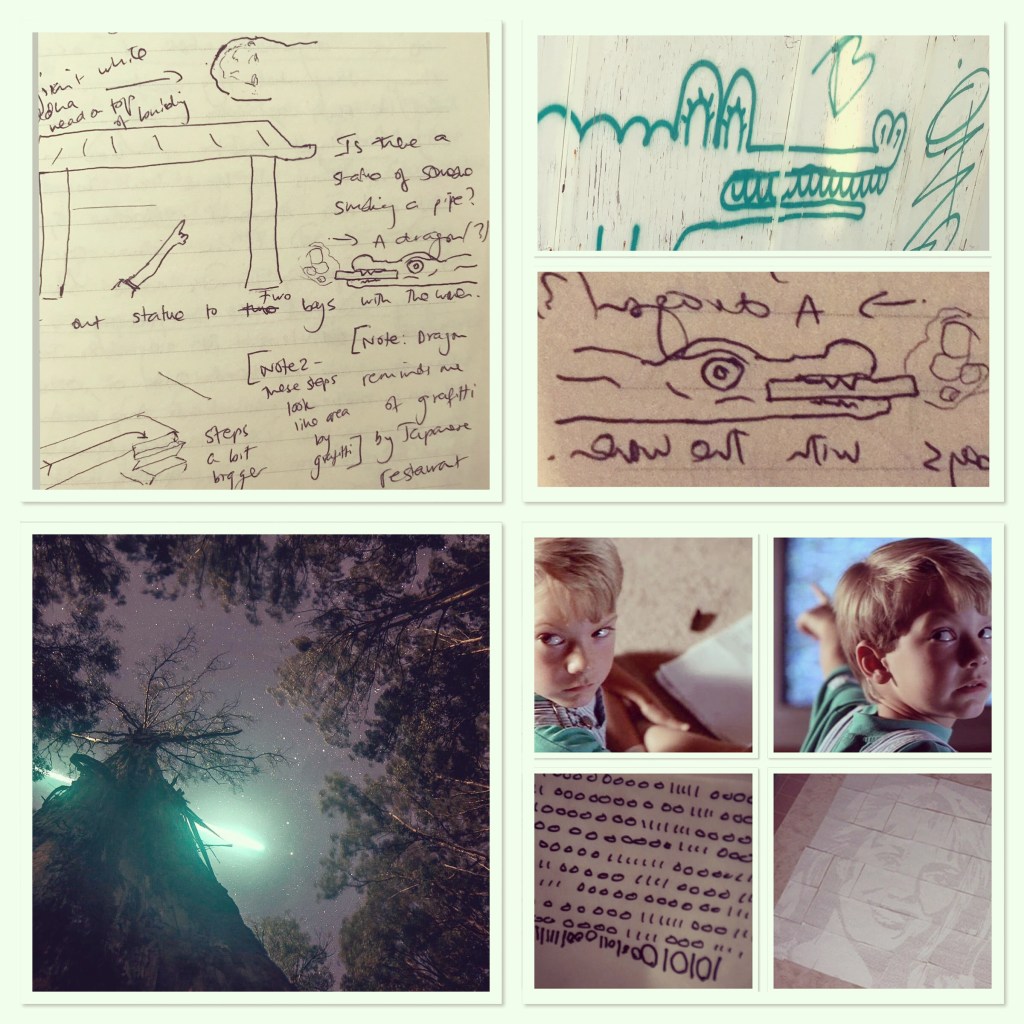 When I looked back at my dream journal I realised that the incomplete Buddha head I had drawn looked like a meteor in the sky (see photos above). In the picture I was even pointing at it, as one often does when we see something strange in the sky. The very form and colour of the Buddha I had drawn created so much more meaning. The meteorite itself could even be said to represent God or the universe. Upon further analysis I realised that the crocodile matched the waking world graffiti even more; the smoke I had drawn looked like the letters on the wooden fence – ‘OMG’. What was more extraordinary still, was that a letter ‘A’ that I had written above the drawing in a sentence resembled a heart that was spray painted above the croc. There was even a dot by an arrow I had drawn that was in precisely the same place in the graffiti photographed.