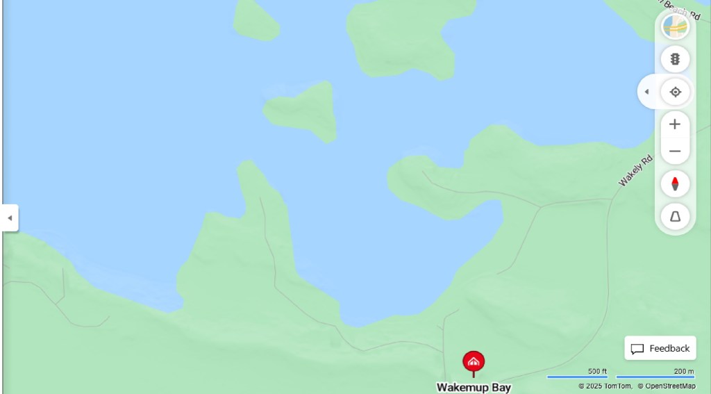 The aptly named Wakemup Bay, MN USA, where the prison made for one is situated: